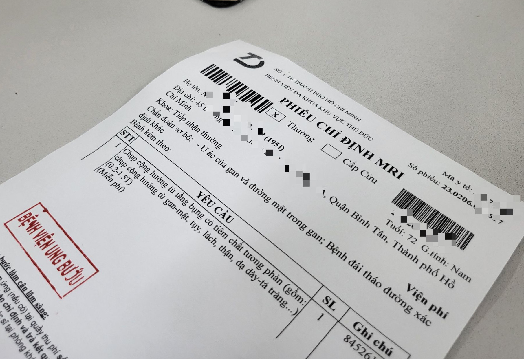Bệnh viện Đa khoa Khu vực Thủ Đức sẽ hỗ trợ Bệnh viện Ung bướu cơ sở 2 (tại TP Thủ Đức) thực hiện chụp MRI cho người bệnh. Các cơ sở này đã ký hợp đồng theo quy định, cam kết đảm bảo quyền lợi chính đáng và an toàn người bệnh.
