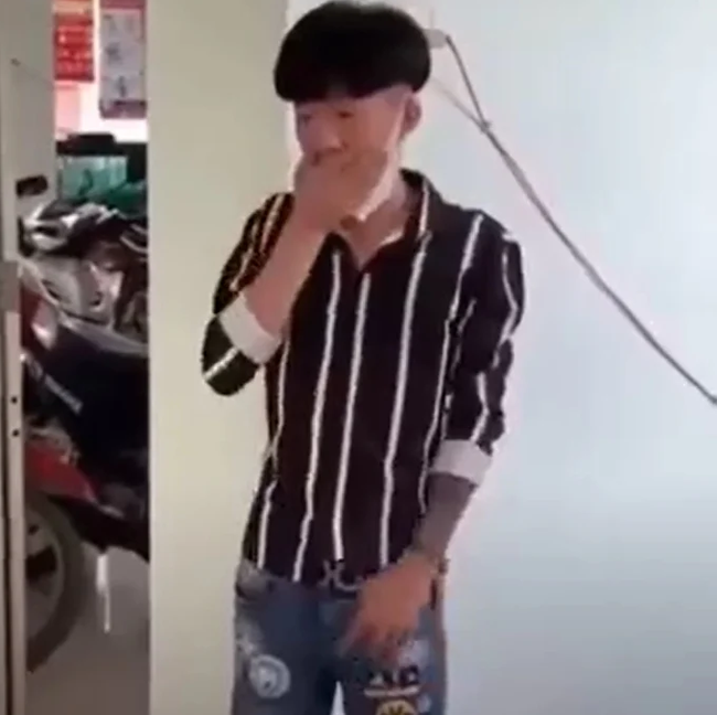 Vẫn trong bộ quần áo như ở clip thách thức công an trước đó, sau khi bị mời lên trụ sở công an làm việc, nam thanh niên này đã tự tay tát vào miệng vì lời lẽ ngông cuồng của mình.