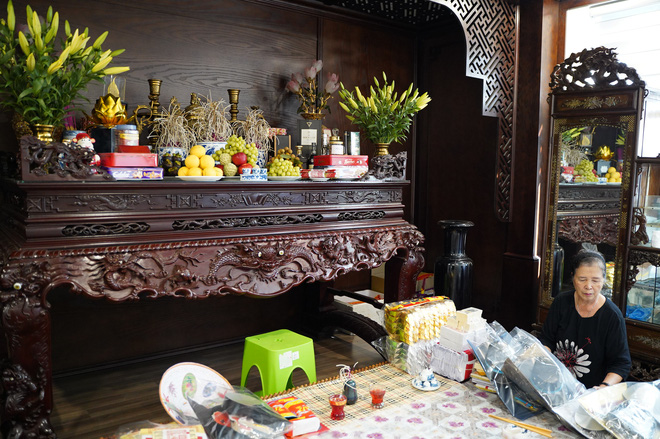 Tương tự cô Hương, cô Nguyễn Thị Hồng (Thái Hà, quận Đống Đa) cũng đặt gói lễ cúng giá 1,5 triệu đồng tại nghĩa trang Lạc Hồng Viên gần một tháng trước. Từ sáng sớm, cô cầm "phiếu đi chợ" ra chợ gần nhà mua đồ lễ. Sau 2 tiếng chuẩn bị, mâm cổ đủ đầy chay, mặn, hoa quả, được đặt lên bàn thờ của gia đình.