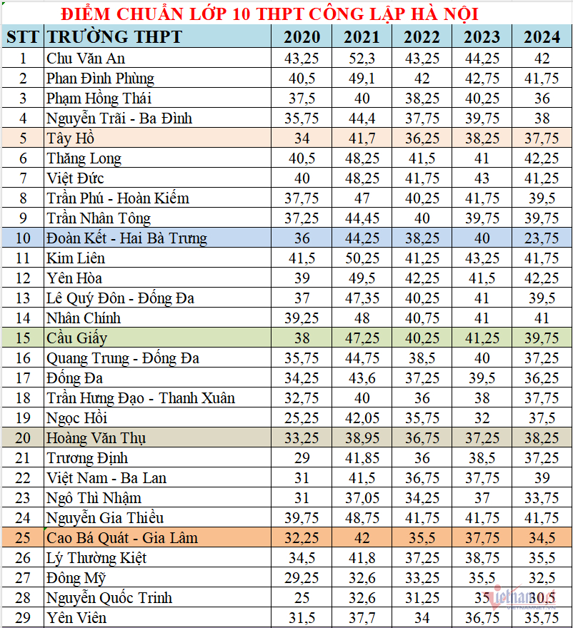 Nếu xét tổng quan trong 5 năm gần đây, chỉ riêng năm 2021, mức điểm chuẩn có phần cao hơn hẳn bởi kỳ thi vào lớp 10 ở Hà Nội năm đó được tổ chức với 4 môn thi.