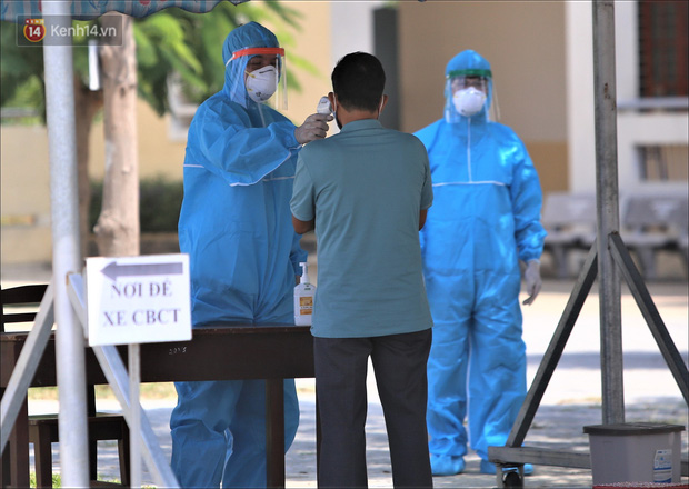 Khoảng 7 giờ sáng 3/9, 36 sĩ tử thuộc diện F2 đã được xe chuyên dụng đưa đón đến điểm thi trường THPT Võ Chí Công (Q.Ngũ Hành Sơn, TP.Đà Nẵng). Riêng 1 thí sinh F1 mặc đồ bảo hộ và được xe cấp cứu đưa vào tận sát phòng thi.