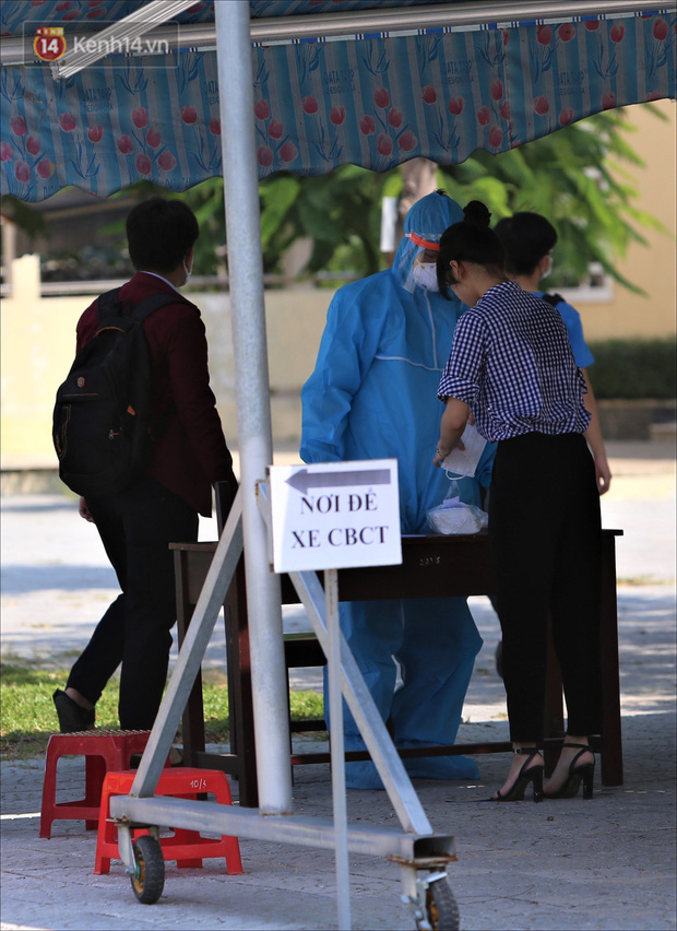 Tại điểm thi này, trước khi vào phòng thi, tất cả các thí sinh và những ai vào hội đồng thi đều được yêu cầu sát khuẩn tay, thay khẩu trang y tế đã được chuẩn bị sẵn và đo thân nhiệt ngay tại cổng.