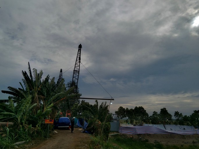Theo ghi nhận tại hiện trường, công tác nhổ trụ bê-tông sâu 35m vẫn đang rất khẩn trương để sớm đưa thi thể bé Hạo Nam về nhà an táng.
