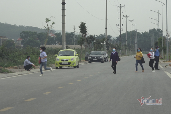 Sáng 17/3, cả trăm người vội vã rời khỏi Công ty EASTECH, thuộc Khu công nghiệp Cộng Hòa, TP Chí Linh khi đoàn kiểm tra phòng dịch tới.