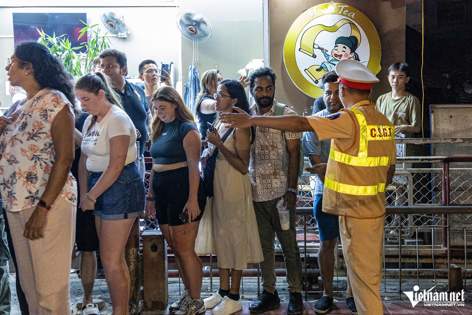 Thời điểm kiểm tra, phố cà phê đường tàu (đoạn đường Trần Phú) có hàng trăm du khách nước ngoài, cùng người dân đang tụ tập sát hành lang đường sắt để chờ tàu hỏa chạy qua.