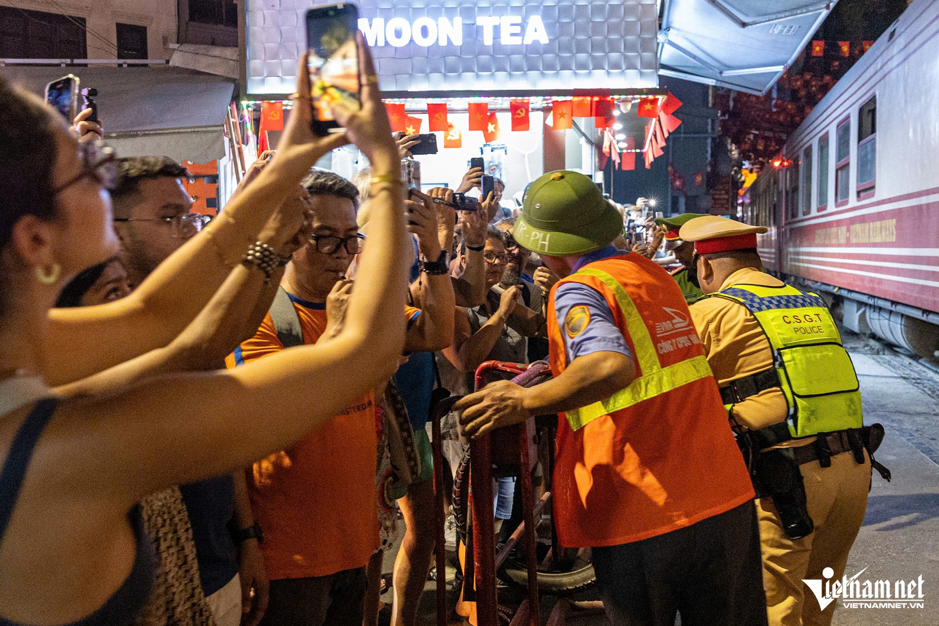 Lực lượng chức năng đã yêu cầu các chủ quán cà phê dọc khu vực đường tàu dọn dẹp hàng quán, đồng thời, mời du khách ra khỏi khu vực để đảm bảo an toàn.