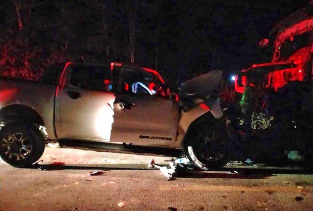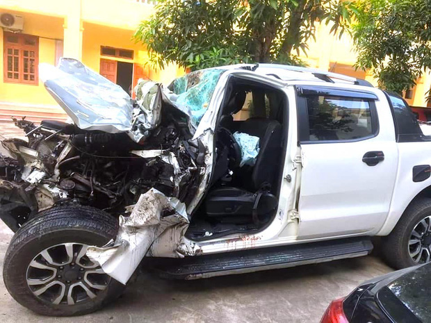 Các hình ảnh ghi lại tại hiện trường cũng thể hiện rõ, chiếc xe bán tải đối đầu trực diện với chiếc xe tải nằm hoàn toàn bên làn đường của chiếc xe tải đang đi. Có thể tốc độ va chạm rất lớn nên sau tai nạn, đầu chiếc xe bán tải dính chặt vào đầu xe tải. Đầu chiếc xe bán tải biến dạng hoàn toàn, kính lái phía trước vỡ. Túi khi phía trước trong xe bung ra.