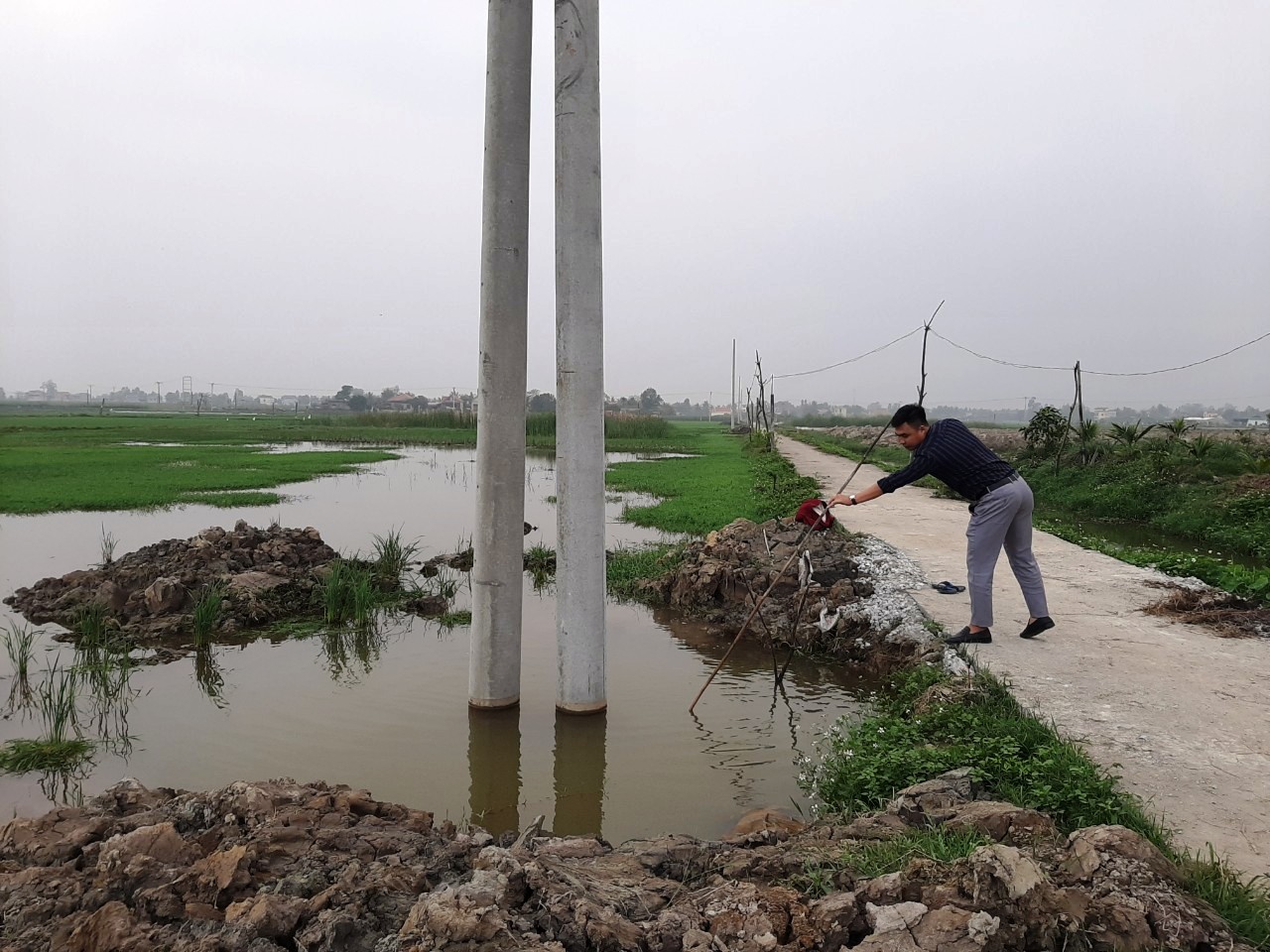 Anh Trấn Tiến Quân (SN 1986), trú tại thôn Hữu Nghĩa (chú ruột của các nạn nhân) cho biết, các cột điện này được đơn vị thi công dựng từ trước Tết Nguyên đán. Dựng xong, họ không đắp đất, hoàn trả mặt bằng, cũng không có rào chắn. Đây là nguyên nhân khiến hai cháu Đ. và A. gặp nạn.