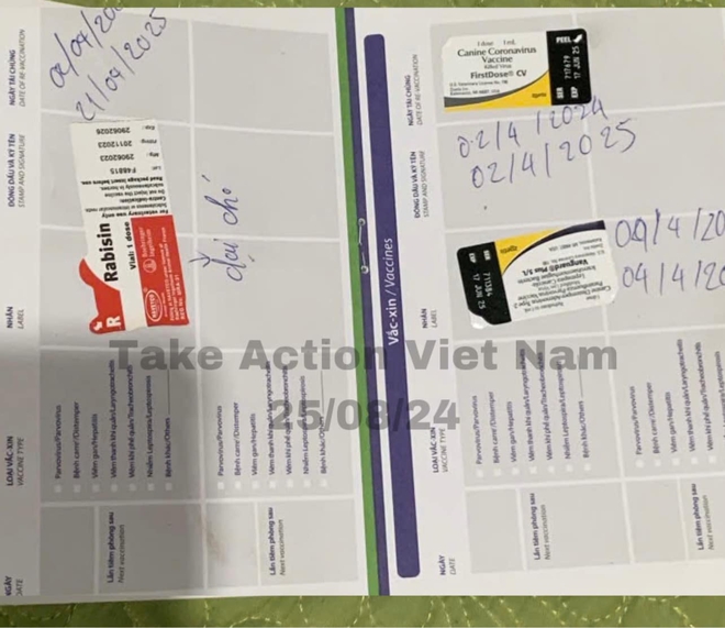 Kèm theo đó là hình ảnh chú chó đang nằm ngủ cùng các giấy tờ liên quan đến đến chú chó này.