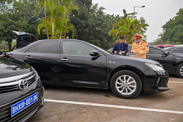 Trước khi tiến hành kiểm tra, Cục CSGT đã kiểm định lại cho các xe đồng thời cấp đăng ký tạm thời theo đúng biển số được gắn mới. Toàn bộ ôtô sử dụng để đưa đón đại biểu được rà soát cẩn trọng từng số khung số máy, hạn kiểm định đúng theo tiêu chuẩn.