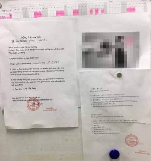 Nội dung bản thông báo ghi rằng: "Tôi đã quyết định sa thải bạn lần này. Xin lưu ý rằng chúng tôi sẽ thông báo cho bạn tại đây dựa trên Đạo luật Tiêu chuẩn Lao động. Ngày thông báo sa thải: 22/9. Ngày sa thải: 24/9. Lý do sa thải: Do điều kiện lao động cực kỳ kém, không có triển vọng cải thiện, không hoàn thành trách nhiệm công việc của người lao động được quy định trong nội quy lao động".