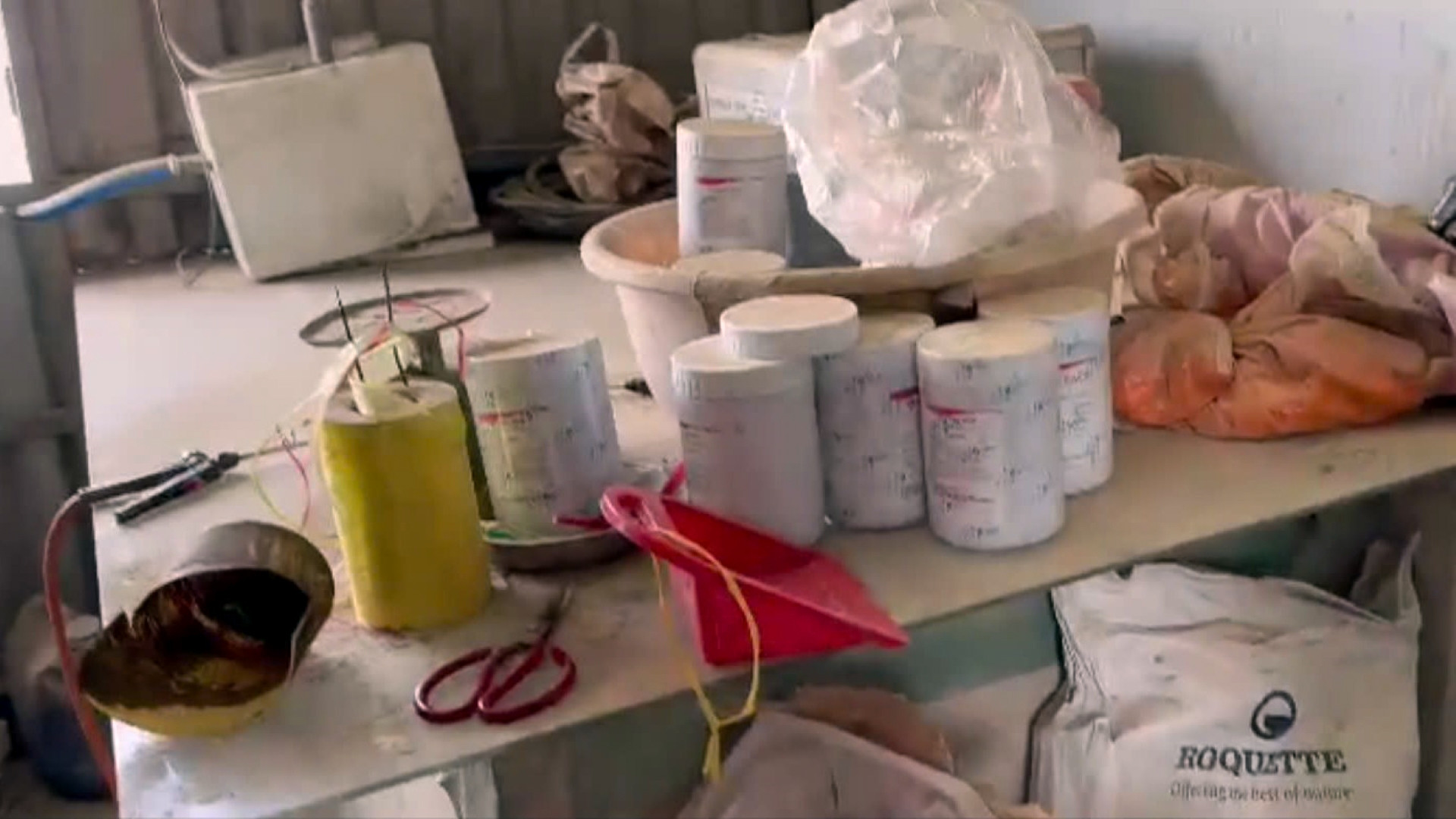 Qua hình ảnh do cơ quan công an ghi nhận tại những địa điểm sản xuất, đóng gói các loại thuốc giả cho thấy, những khu vực này rất bẩn thỉu. Nguyên vật liệu, phụ gia được để bừa bãi trên sàn nhà, bám đầy bụi bẩn. Thuốc giả được đựng trong chậu nhựa, ném khắp nơi, thậm chí phơi ngay trên nền bê tông ngoài sân thượng...
