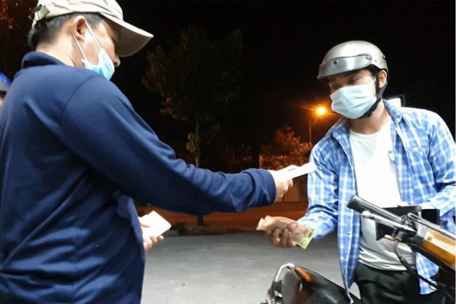 Thấy nạn nhân phản ứng trong lúc cây xăng đang có nhiều khách, ông này nhanh chóng đưa hai tờ 50.000 đồng cho nam sinh viên.