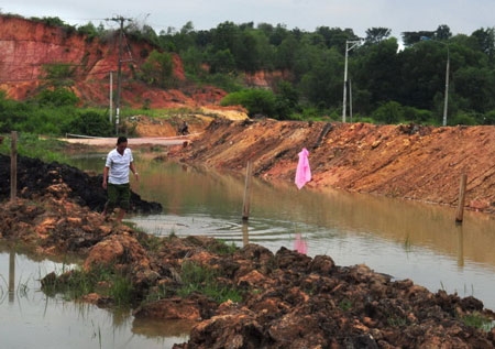 Hố sâu nơi xảy ra vụ tai nạn chết người thuộc công trình nâng cấp, mở rộng tuyến tỉnh lộ 25A, đi qua địa bàn xã Phú Hội, huyện Nhơn Trạch - Ảnh: Đức Trong |