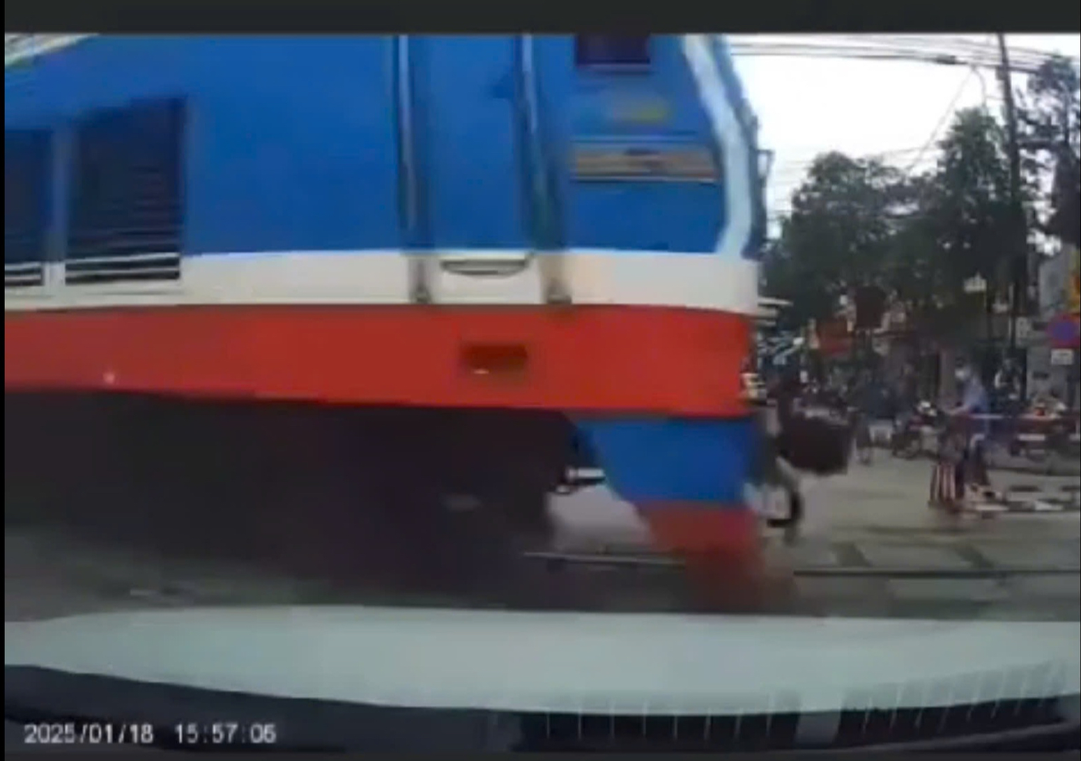 Sự việc được cho là xảy ra vào khoảng thời gian 15 giờ 56 phút ngày 18-1. Khi này, các nhân viên làm nhiệm vụ gác chắn ở đây mới ra kéo chắn. Hình ảnh từ camera cho thấy các gác chắn chưa kéo đóng hết đường ngang, đoàn tàu hỏa lao tới với tốc độ cao và liên tục kéo còi. Rất may không có tai nạn xảy ra.