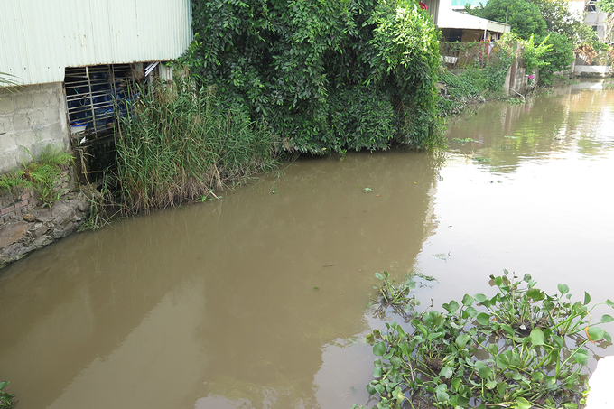 Gần đây, nguồn nước đầu vào bị gián đoạn, ông Thiện sử dụng nước bị ô nhiễm trên con mương phía sau xưởng. Nước được bơm lên bể lọc, khử mùi, "chạy" qua hệ thống xử lý trước khi đóng bình.