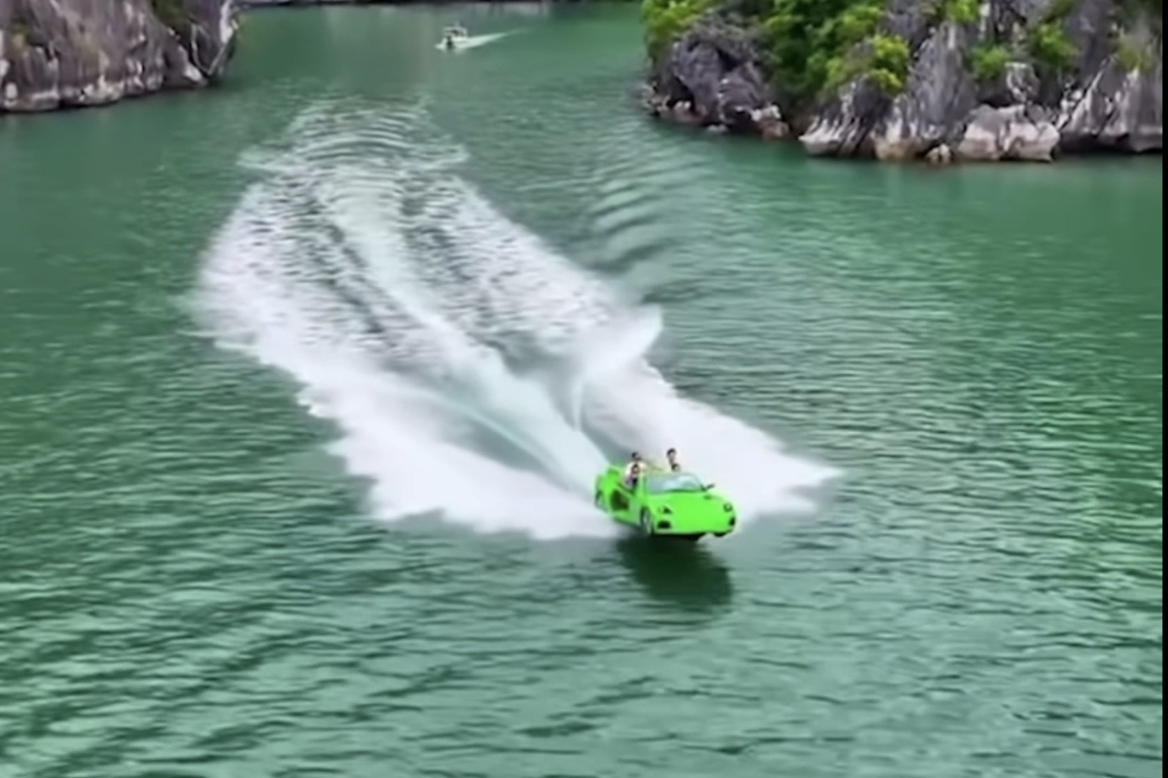 Những ngày gần đây trên mạng xã hội Facebook xuất hiện đoạn clip ghi lại cảnh một phương tiện thủy có hình dáng giống chiếc ô tô con, lướt trên mặt nước ở vịnh Hạ Long (Quảng Ninh).