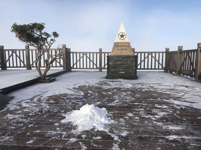 Sáng 29/11, mạng xã hội lan truyền hình ảnh đỉnh Fansipan (Sa Pa, Lào Cai) lần đầu xuất hiện băng tuyết trong mùa đông năm nay. Theo hình ảnh ghi nhận được, các tinh thể màu trắng đục rơi xuống nền và có độ ẩm cao.