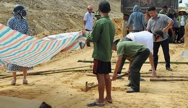 Khi xe tải đang đổ đất thì mọi người tá hỏa phát hiện một thi thể nam giới trôi từ trên xe xuống.