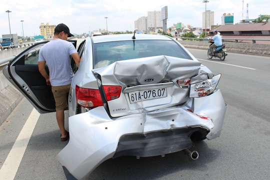18/09/2016 21:50Đổ dốc cầu, xe khách đâm đuôi xe con biến dạng