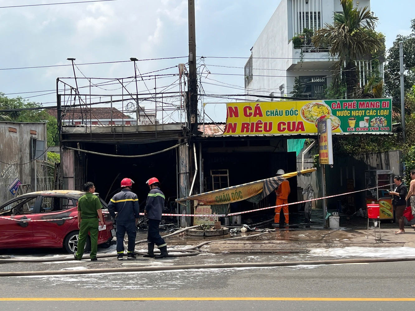 Tại đây, hai người xảy ra mâu thuẫn. Trong lúc bực tức, người đàn ông đã đổ xăng xuống đất ngay trước tiệm để hù dọa vợ. Bất ngờ lửa bùng lên, gây cháy dữ dội cả tiệm rồi cháy lan qua quán đồ ăn bên cạnh. Ngọn lửa còn gây cháy cả một chiếc xe ô tô đang đỗ phía trước.