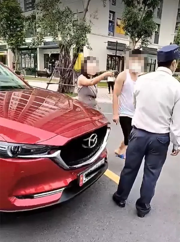 Trong clip, người chồng liên tục to tiếng chạy qua quát mắng bảo vệ. Còn người vợ ăn mặc lịch sự cũng chạy đến buông lời xúc phạm đồng thời tát người bảo vệ một cách thô bạo.