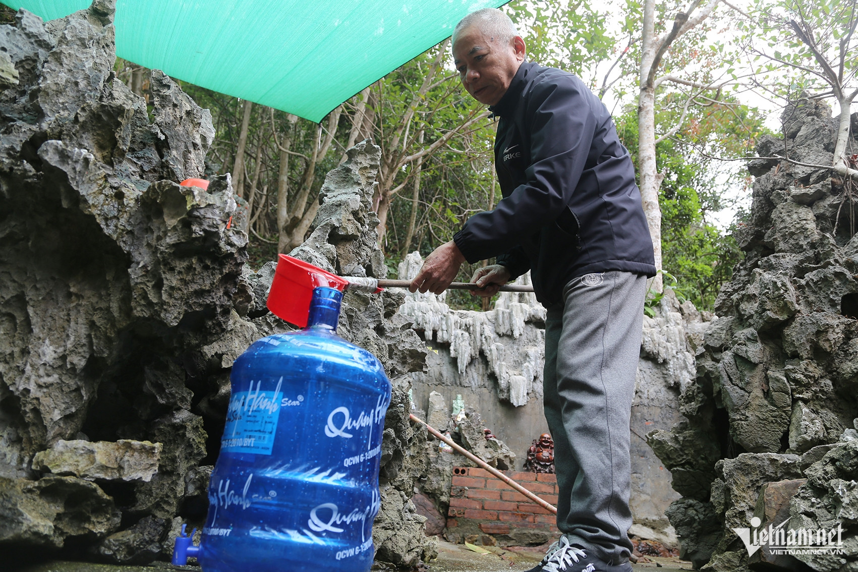 Tại đây, mọi người dùng gáo để múc nước giếng uống, rửa mặt và đổ vào chai lớn rồi đem về nhà.