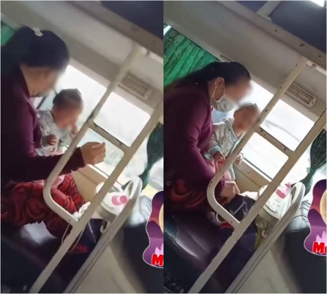 Chưa dừng lại ở đó, lúc sau khi cháu bé đánh rơi bình sữa xuống sàn xe, người phụ nữ liền dùng tay dúi, đánh mạnh lên đầu khiến cháu bé khóc thét rồi tiếp tục mắng mỏ.