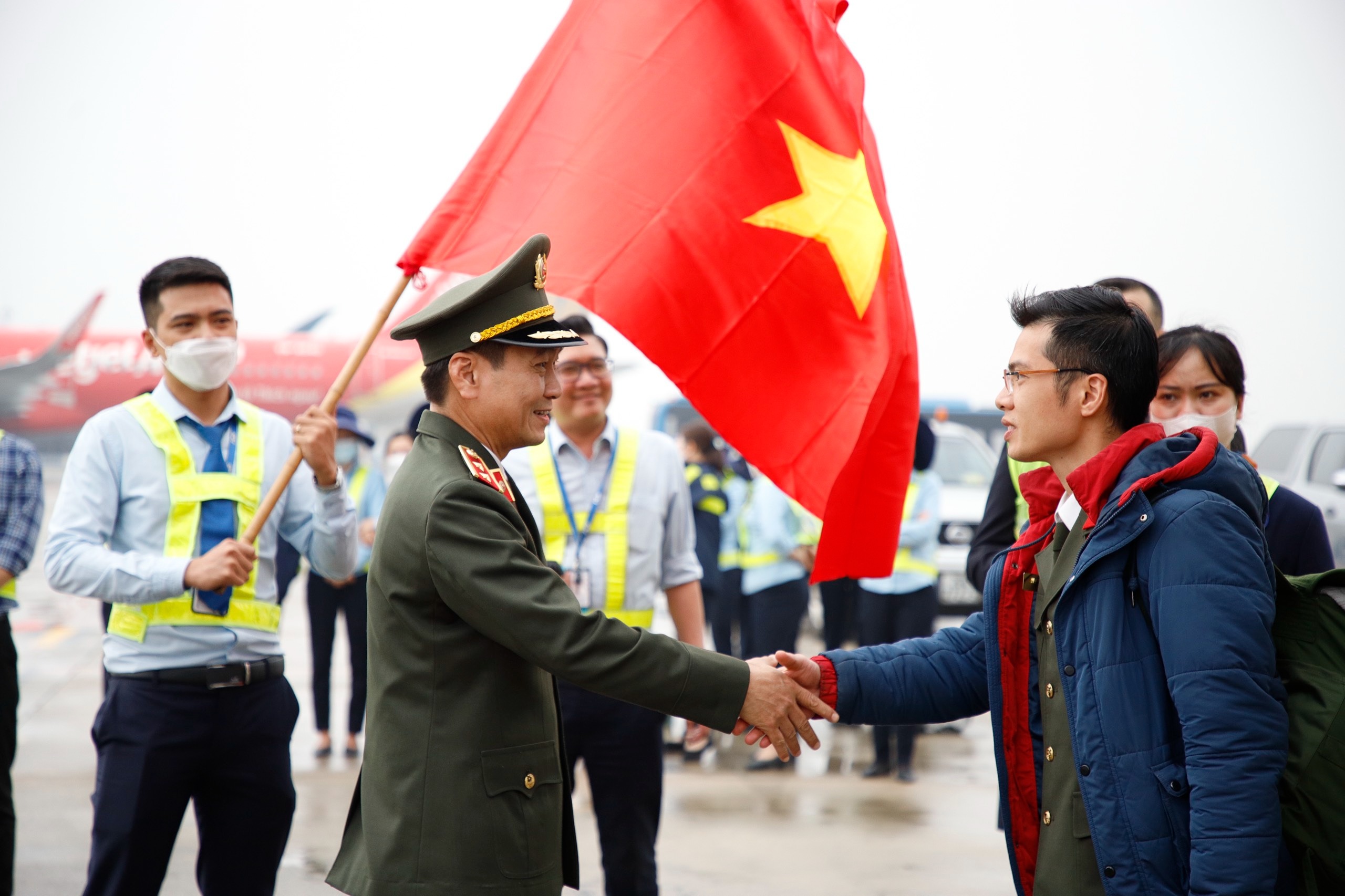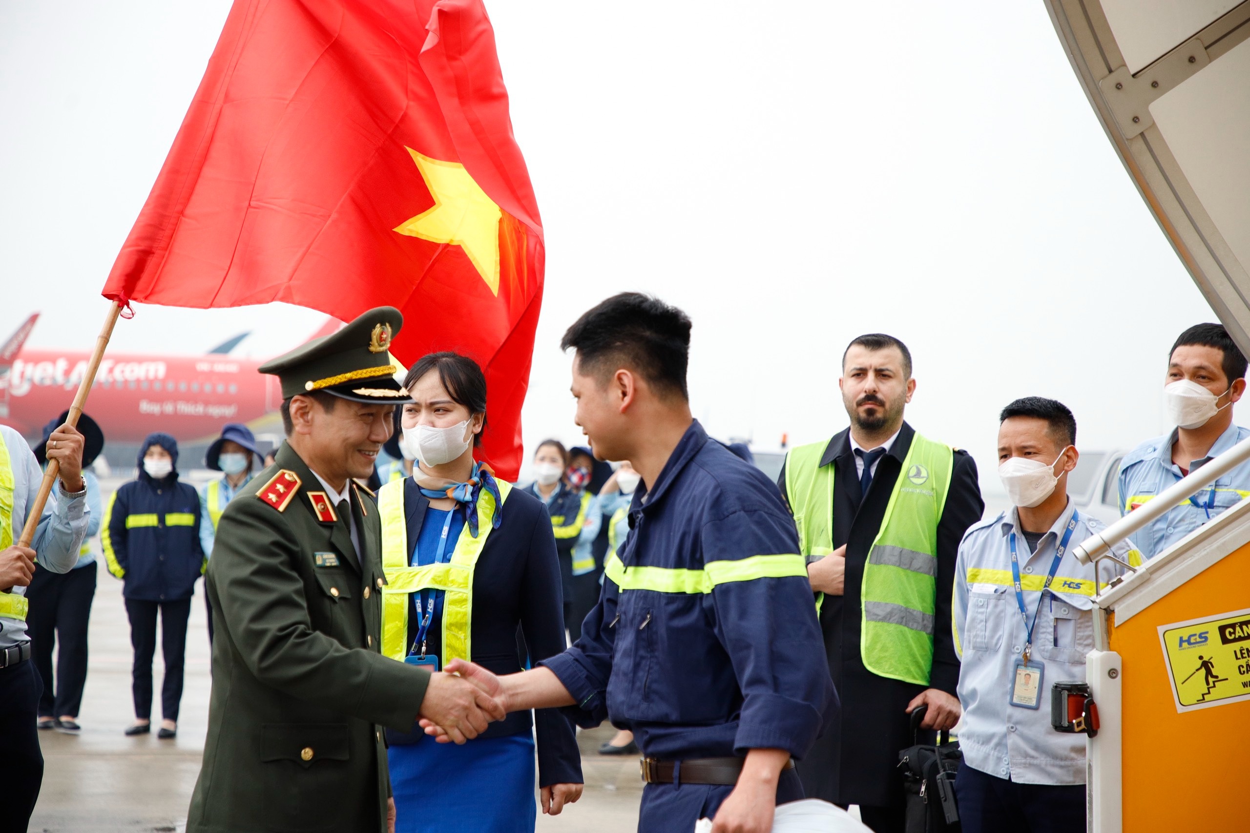 Trung tướng Lê Quốc Hùng - Thứ trưởng Bộ Công an chủ trì buổi đón đoàn cứu nạn, cứu hộ. Đến dự buổi đón Đoàn còn có Thiếu tướng Nguyễn Văn Long - Thứ trưởng Bộ Công an cùng lãnh đạo các đơn vị thuộc Bộ Công an.