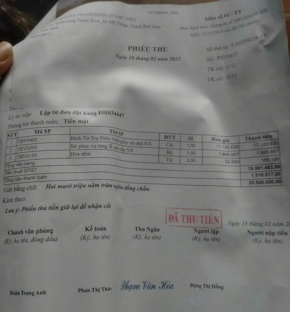 07/03/2025 15:31Đoàn tang 60 người góp 20 triệu mua quách của Công ty Thanh Bình An Lạc Viên