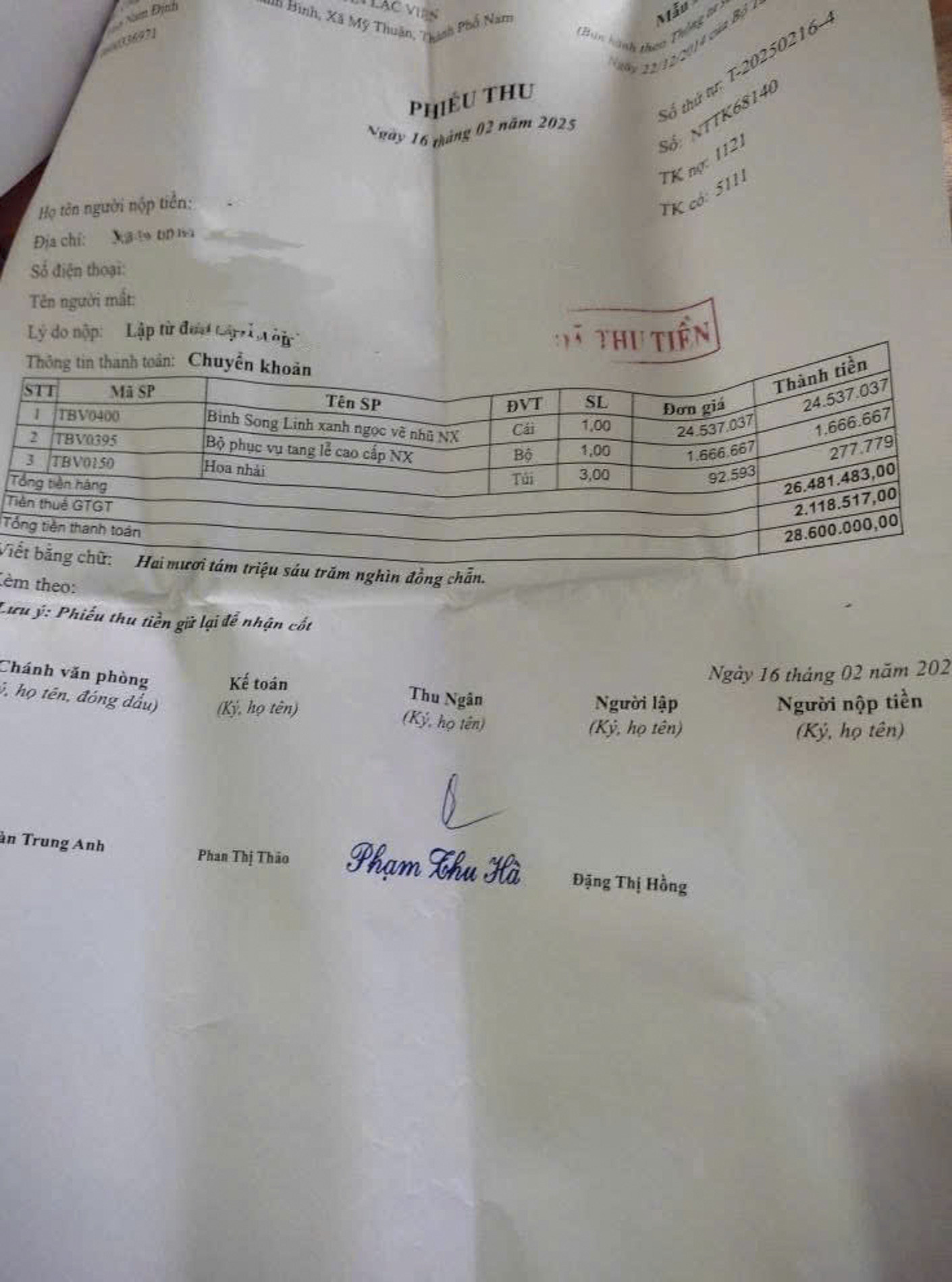 Tương tự gia đình chị Hương, ông Nguyễn Xuân Thu, SN 1961, trú tại Hoành Lộ, xã Giao An, huyện Giao Thủy, tỉnh Nam Định cũng phản ánh: “Ngày 16/2 vừa qua, em gái của tôi mất, gia đình có ký hợp đồng với đài hóa thân này để làm dịch vụ hỏa thiêu. Chúng tôi đã mua sẵn quách gỗ loại đẹp để mang từ nhà đi, nhưng họ không đồng ý. Họ nói phải mua thêm tiểu nhỏ để bên trong. Chúng tôi muốn mua loại rẻ nhưng họ không bán. Họ yêu cầu mua loại hơn 24 triệu. Các nhân viên ở đài hoá thân cho rằng, phải chi một số tiền lớn mua quách như vậy mới đựng đủ xương người mất.