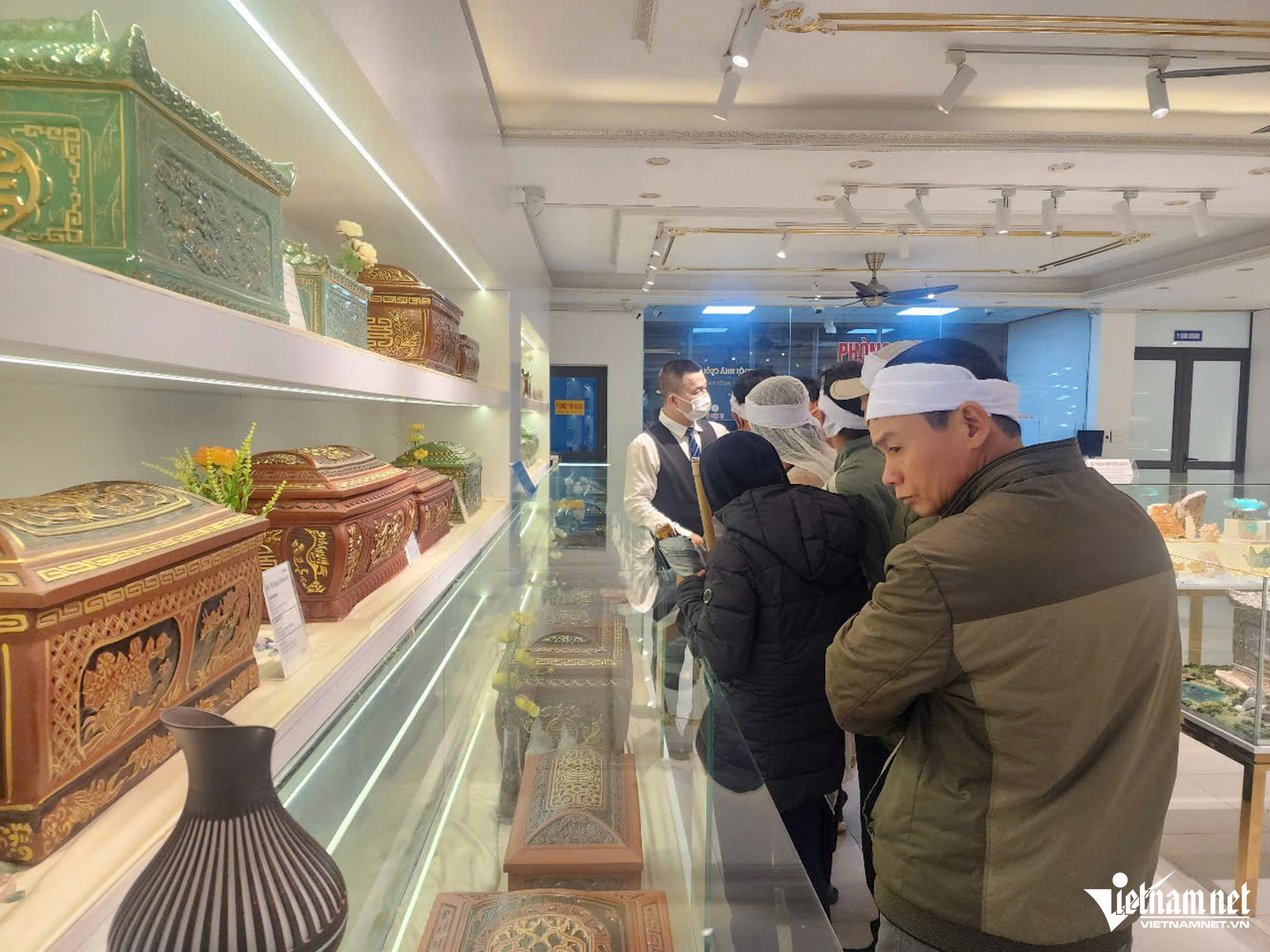 Sau khi thiêu xong, nhân viên tại đây dẫn chị Hương cùng người thân đi chọn quách. Được giới thiệu các mẫu quách đẹp với giá từ vài chục đến hơn trăm triệu, gia đình không đủ kinh tế nên từ chối.