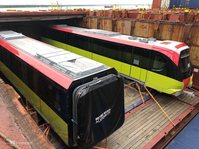 Theo Ban quản lý đường sắt đô thị Hà Nội (MRB), sáng nay, các toa tàu sẽ được bốc dỡ xuống xe chuyên dụng để chuyển tới khu depot Nhổn (Hà Nội), lắp đặt lên ray chạy thử nghiệm trước khi vận hành chính thức.