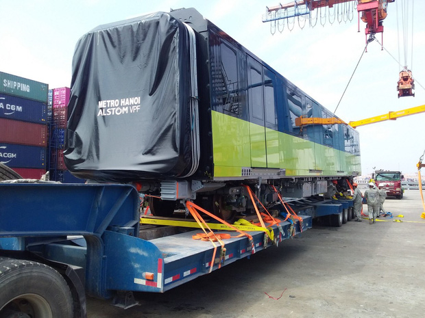 Tại khu vực Depot Nhổn (Hà Nội), các toa tàu được cẩu lên ray về khu vực tập kết để tiến hành công tác lắp ráp vận hành thử nghiệm trước khi đi vào vận hành chính thức.