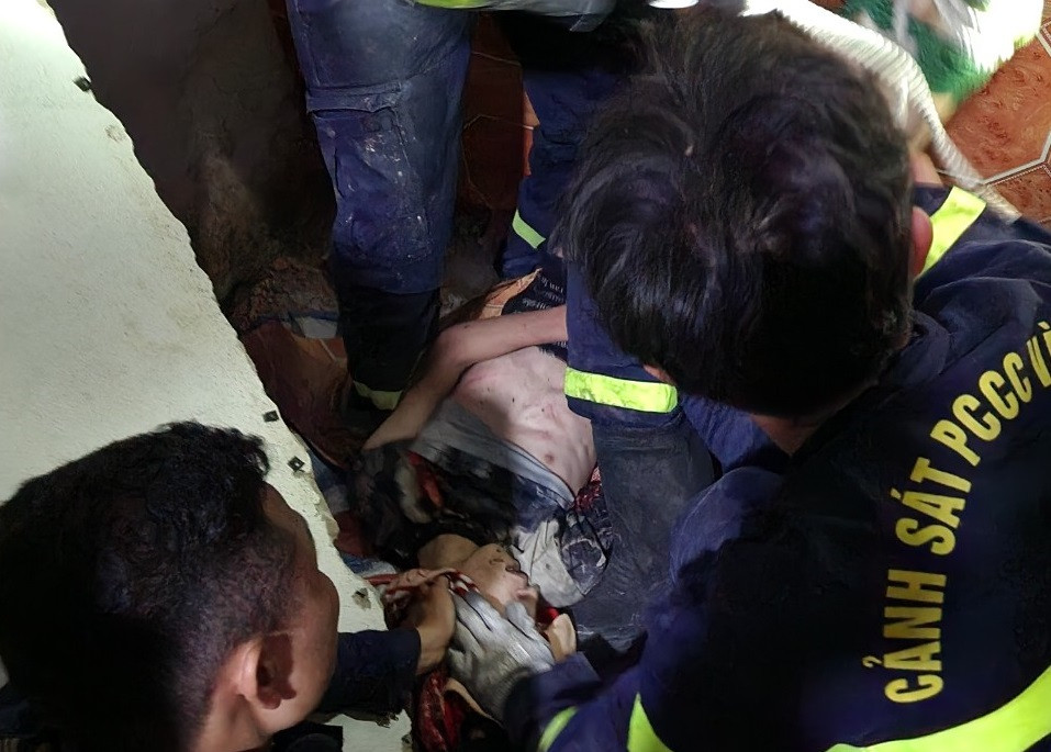Đội Cảnh sát PCCC và CNCH Công an TP Thuận An sau đó đã phối hợp với Công an phường An Phú đến hiện trường, dùng thiết bị chuyên dụng cắt thủng bức tường. Sau khoảng 20 phút, lực lượng cứu hộ cứu nạn đã tiếp cận và đưa được nam thanh niên này ra ngoài an toàn.