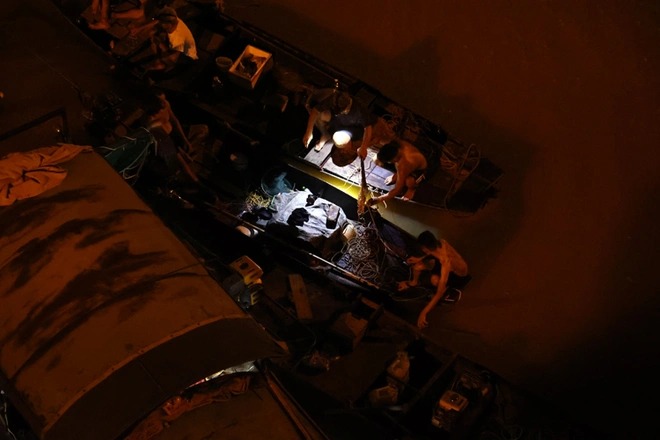Ghi nhận lúc 0 giờ 15 ngày 7/9, có 3 chiếc thuyền máy đã được huy động để phục vụ công tác cứu hộ, cứu nạn. Trên cầu Long Biên, hàng trăm người hiếu kỳ đứng theo dõi sự việc.