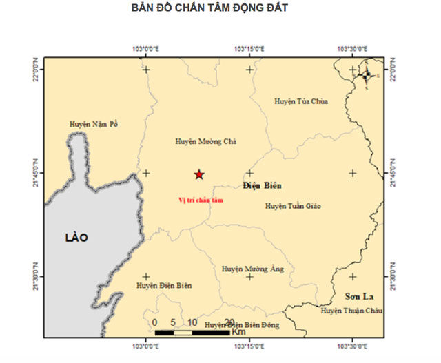 Tâm chấn của trận động đất nằm tại huyện Mường Chà, và khu vực này được cảnh báo có cấp độ rủi ro thiên tai cấp 2.