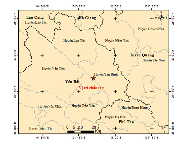 Vị trí chấn tâm nằm ở xã Mường Lai, huyện Lục Yên, giáp ranh với huyện Bắc Quang, tỉnh Hà Giang.