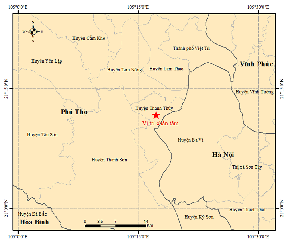 Chiều 9/11, đại diện Viện trưởng Viện Vật lý địa cầu cho biết, vào hồi 16h18 tại vị trí khu vực Thanh Thủy (Phú Thọ) đã xảy ra một trận động đất mạnh 3,3 độ richter.