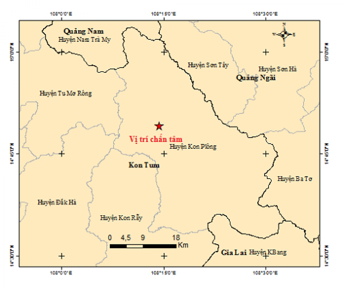 Trung tâm báo tin động đất và cảnh báo sóng thần - Viện Vật lý Địa cầu (Viện Hàn lâm Khoa học và công nghệ Việt Nam) cho biết, vừa tiếp tục ghi nhận một trận động đất nữa xảy ra tại khu vực huyện Kon Plong, tỉnh Kon Tum.