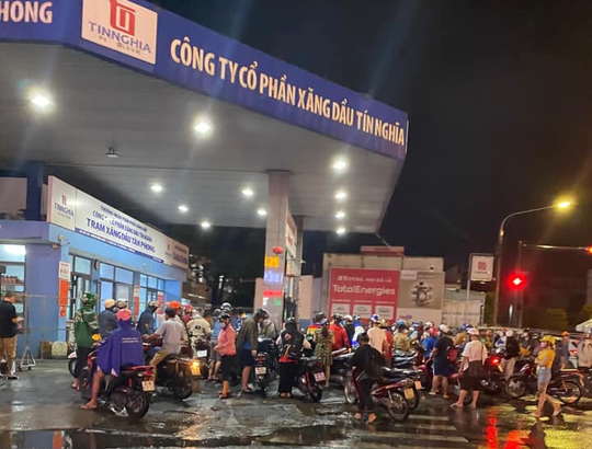 Khuya qua (10-10), rất đông người dân tranh nhau mua xăng lẻ với giá 30.000 đồng/lít ngay trước cửa cây xăng treo biển hết xăng ở TP Biên Hoà, Đồng Nai.