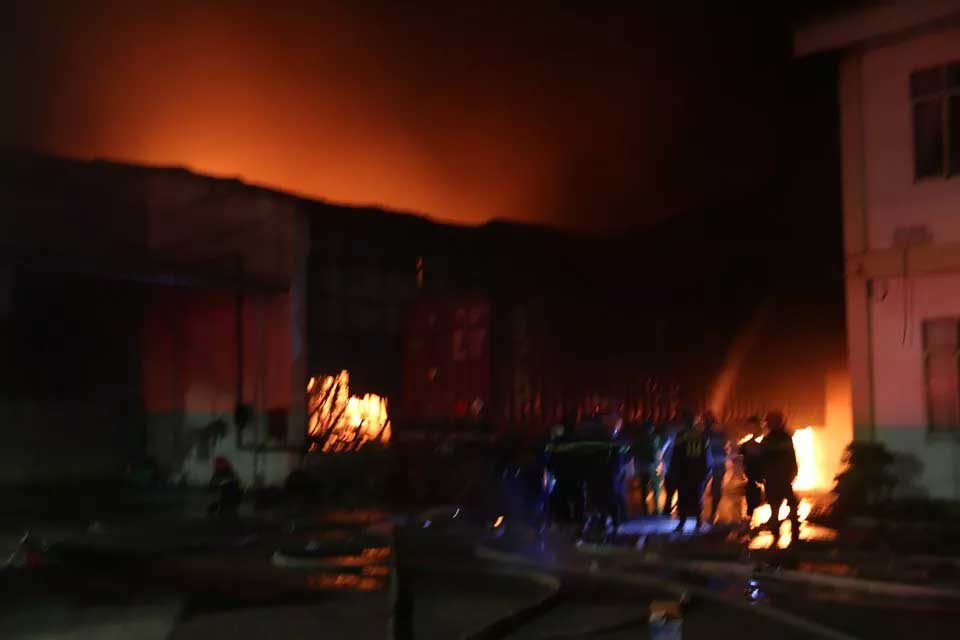 Theo các nhân chứng, ngọn lửa bùng phát lúc hơn 18h tại khu vực nhà xưởng rộng hàng nghìn mét vuông. Đám cháy sau đó nhanh chóng bùng phát dữ dội kèm một số tiếng nổ được cho là phát ra từ các thùng hóa chất.