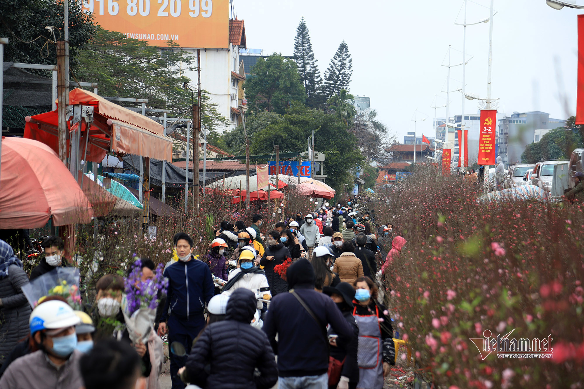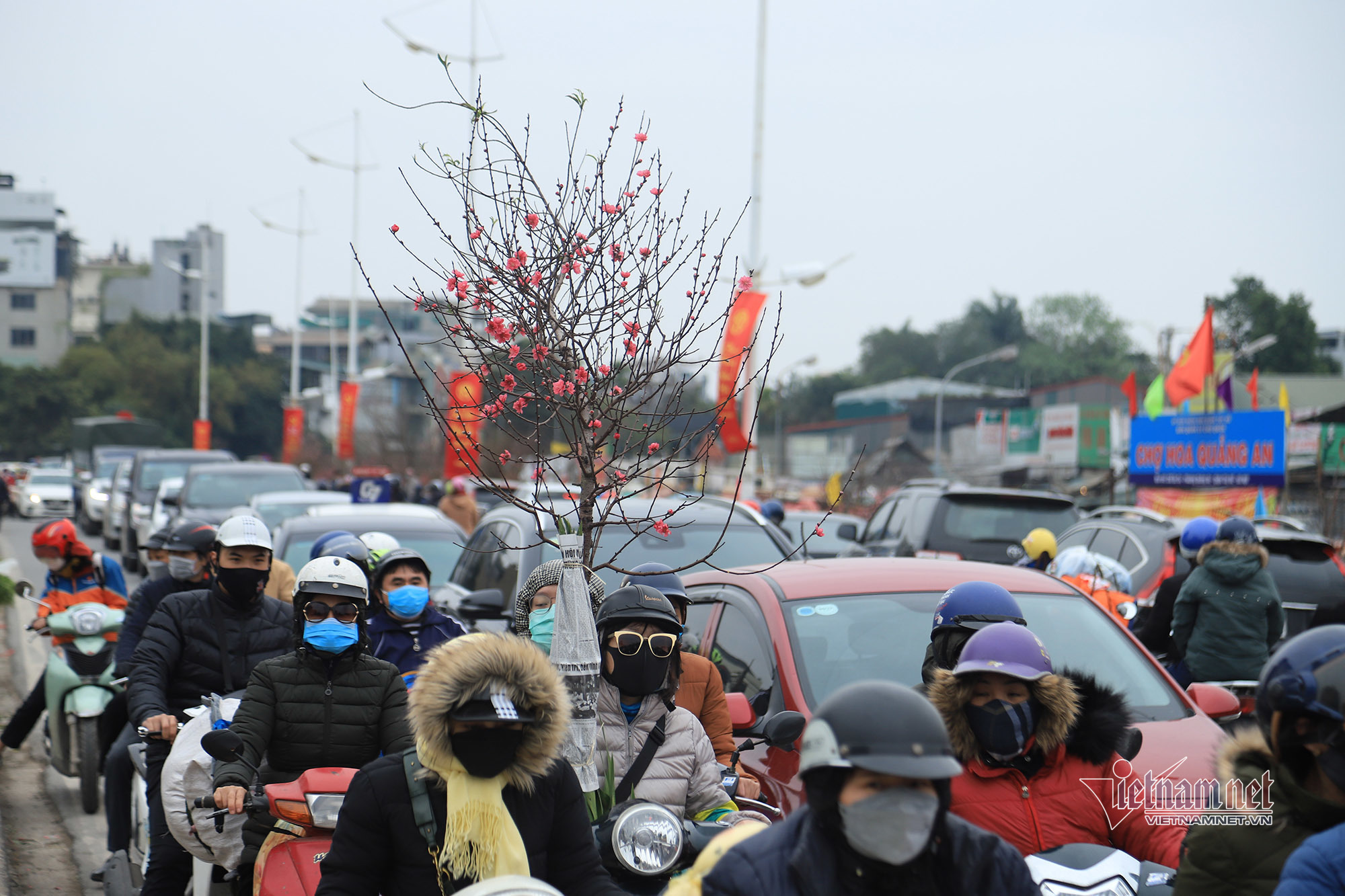 Ở vườn hoa Lạc Long Quân và chợ hoa Quảng Bá (quận Tây Hồ) đông nghịt người mua. Các tuyến đường, ngã ba, ngã tư quanh khu vực Lạc Long Quân, Âu Cơ luôn xảy ra tình trạng ùn tắc.