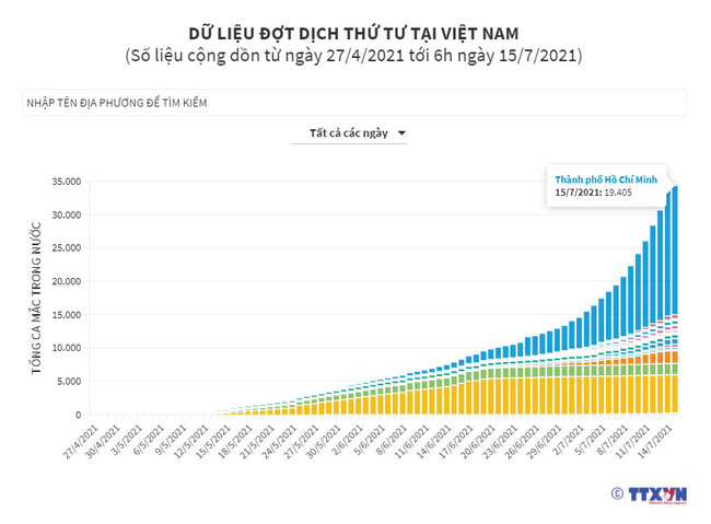 15/07/2021 21:06Đợt dịch COVID-19 thứ 4: Việt Nam đã ghi nhận 34.710 ca mắc mới, TP. Hồ Chí Minh nhiều nhất với 19.405 ca