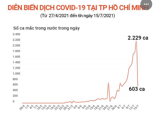 Tính đến 6h ngày 15/7/2021, TP Hồ Chí Minh ghi nhận thêm 603 ca mắc mới nâng tổng số ca mắc COVID-19 là 19.405 ca.