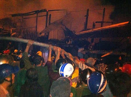 Những người dân xung quanh khu vực chợ phường 4 (thành phố Cà Mau) tự dập lửa bằng dụng cụ thô sơ, với nguồn nước sẵn có tại chỗ. Song, lửa bốc cháy, uy hiếp các ngôi nhà liền kề nên người dân gọi cảnh sát PCCC. |