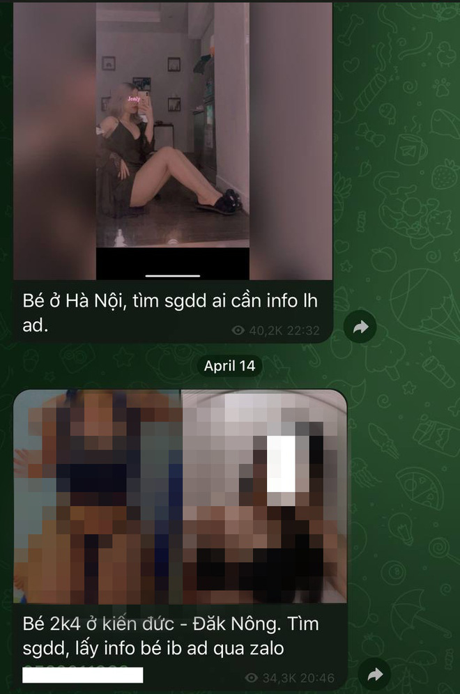 Không khó để tìm thấy những lời mời chào bao nuôi một cô gái như đang ngả giá một món hàng trong loạt group chuyên dắt mối SGBB cho các SGDD. Giờ đây, Facebook hay Zalo không còn là "ổ" môi giới nữa mà các "tú ông", "tú bà" quyết định dọn qua Telegram - một ứng dụng chat được quảng cáo với tính bảo mật cao.