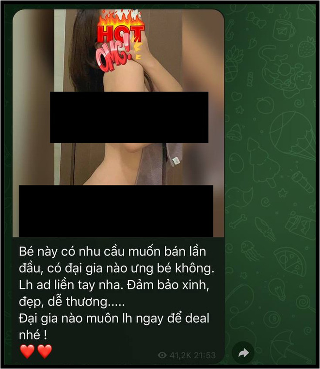 22/09/2021 13:10Đột nhập group ngã giá thân xác của 'các bé' 2k4 - 2k5 tìm người bao nuôi: Hét giá 150 triệu/đêm, đặt cọc 50% để gặp, 'boom hàng' thì sale