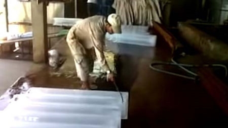 Ngày 7/3, sau khi lôi đá ra từ khay (hàng trăm cây đá nằm bê bết trên sàn nhà lênh láng nước), Giang, một công nhân làm ở đây, vô tư kéo quần tè vào vũng nước nơi để đá chuẩn bị đi giao. Nước tiểu theo đường dẫn, trong chốc lát đã hòa vào dòng nước rỉ rả trên sàn gạch. Còn ở khu vực xuất đá cây, công nhân vô tư dẫm chân lên các cây đá chuẩn bị đưa lên xe đi giao.