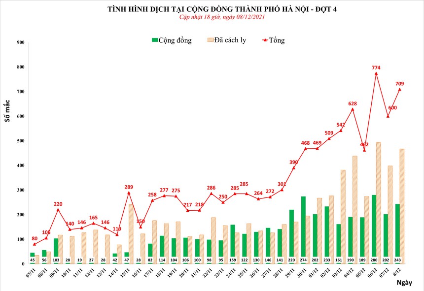 Đặc biệt ngày 6/12 phát hiện số ca mắc cao nhất từ trước đến nay là 774 ca và ngay trong sáng 9/12, đã có 172 ca dương tính.